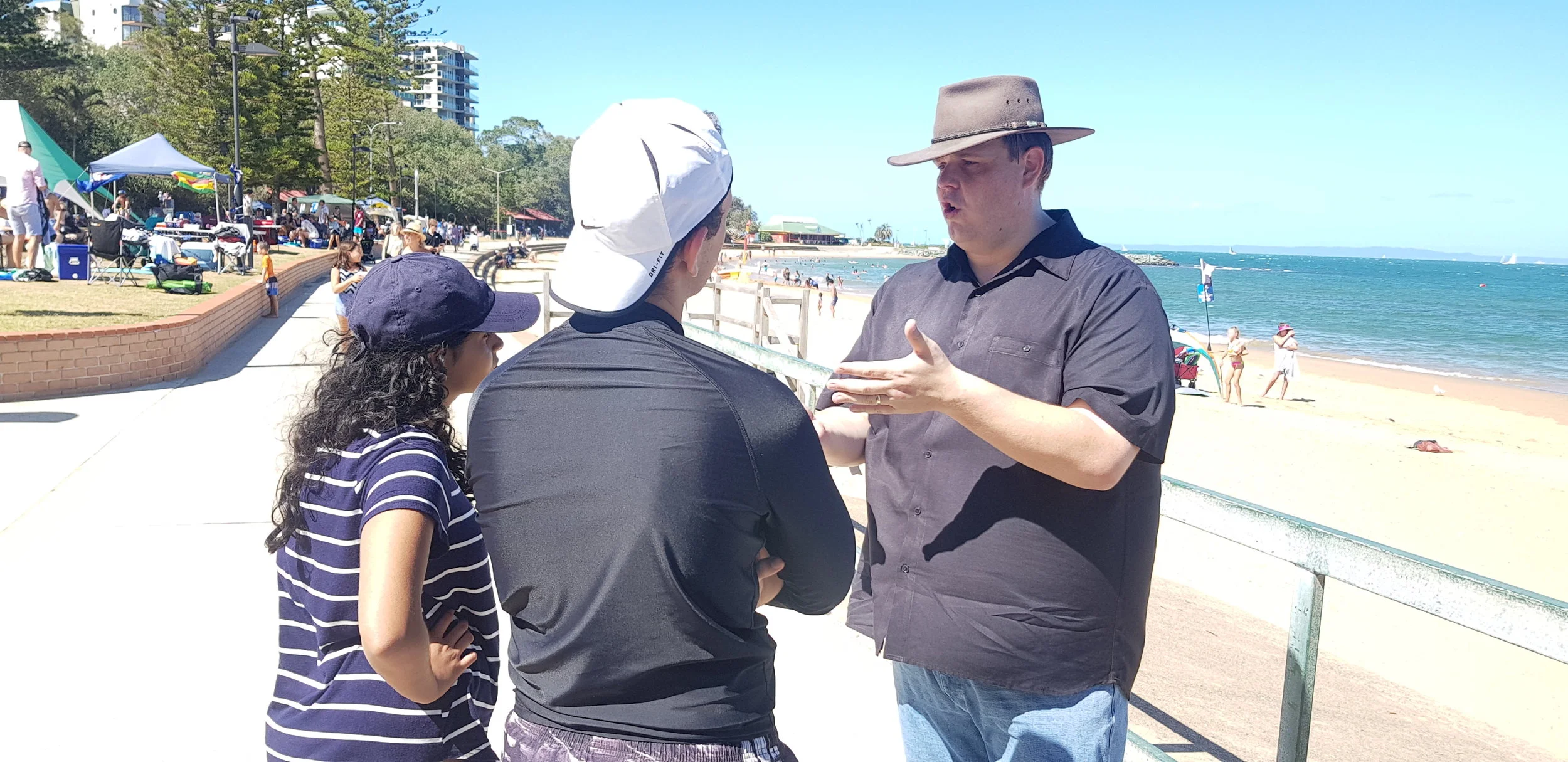 It was picture perfect weather today in Redcliffe; the sun was shining, the skies were clear, and the beaches were full of people celebrating Australia Day. For this afternoon’s outreach we moved down to Sutton’s Beach as the local council had put on a special event that attracted thousands of people to come out in order to celebrate the founding of our nation.