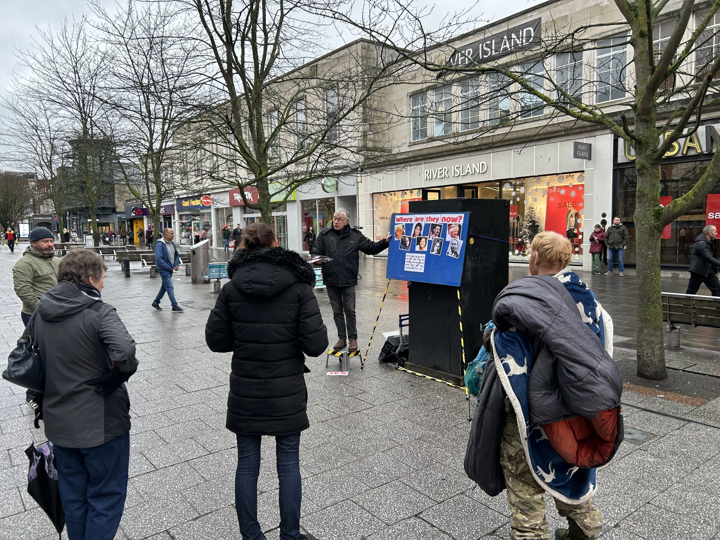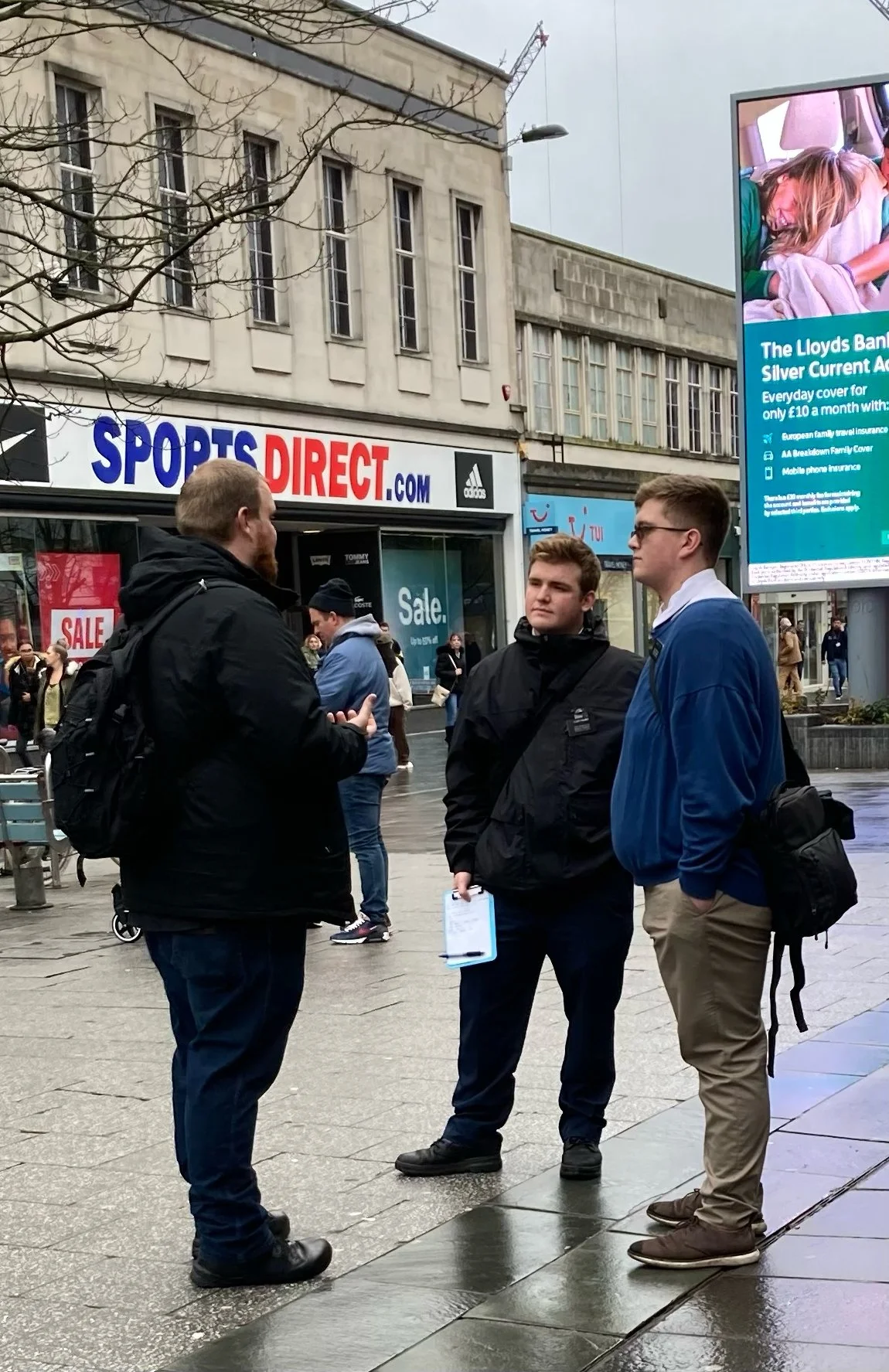 Today, as the rain fell, I made my way to the city centre of Southampton for my first-ever outreach in this location. It was just after 1pm when I met with a local evangelist, Mike Mellor, and the team. By the time I arrived, Mike was already preaching the gospel. As he did so, a man from the crowd showed interest, so Mike offered him a copy of John’s Gospel. After receiving the Scripture, the man began to walk away, so I engaged him in conversation.
