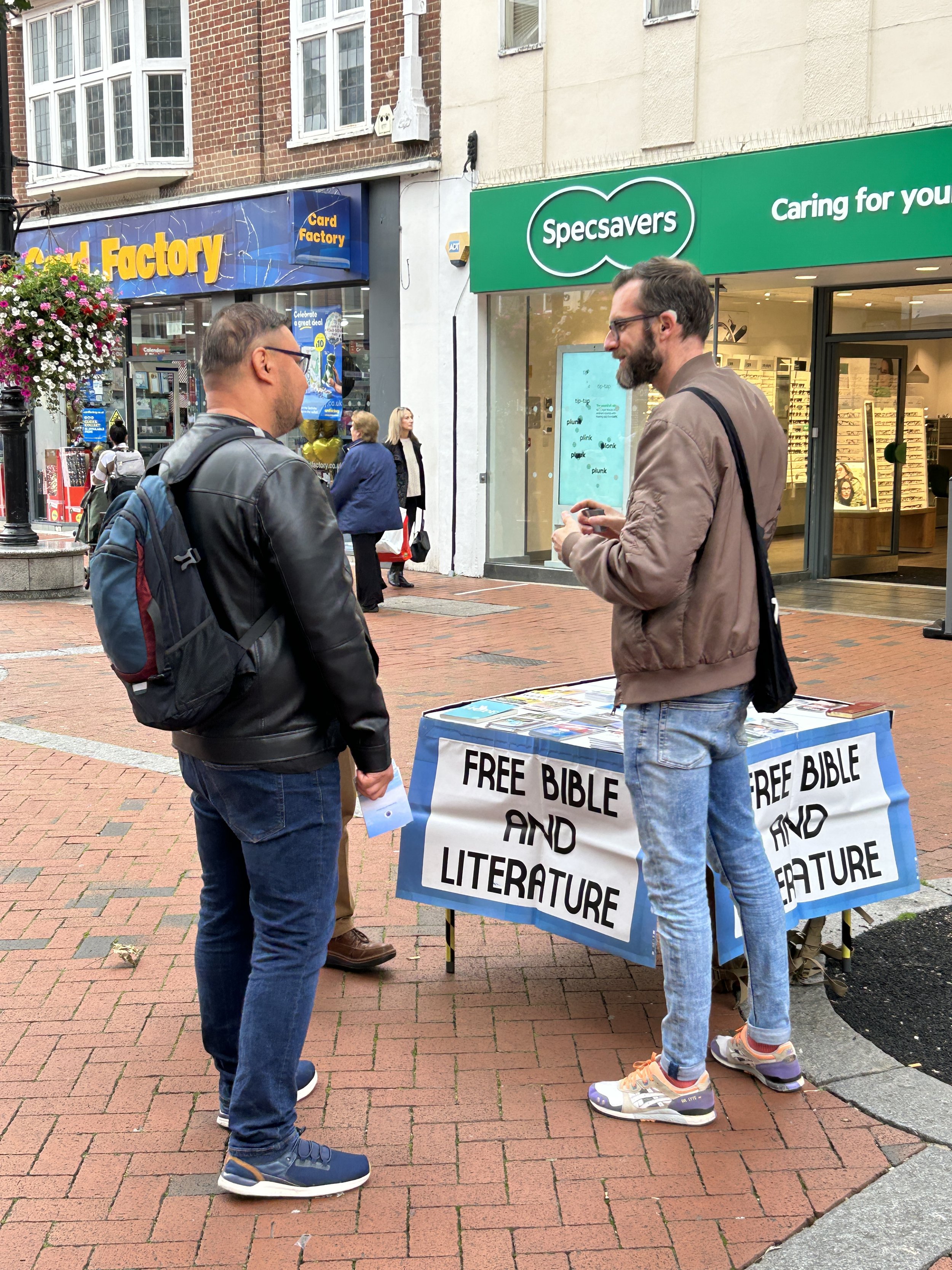 In Revelation 7:9, the Bible declares that one day, an innumerable multitude from every nation, tribe, people, and language will gather before the Lord Jesus in worship. This tells us that the good news isn’t confined to one people group or language; instead, Christ is for all nations. As we evangelised in Reading, we saw glimpses of what it will be like in Heaven, as in this community, there are people from all over the world. Being so multicultural provides challenges as well as opportunities. The greatest challenge is being able to reach all the different language groups. Throughout the day, we met people from all over the world; thankfully, we could point them to resources in their language. There were many languages, but only one gospel!