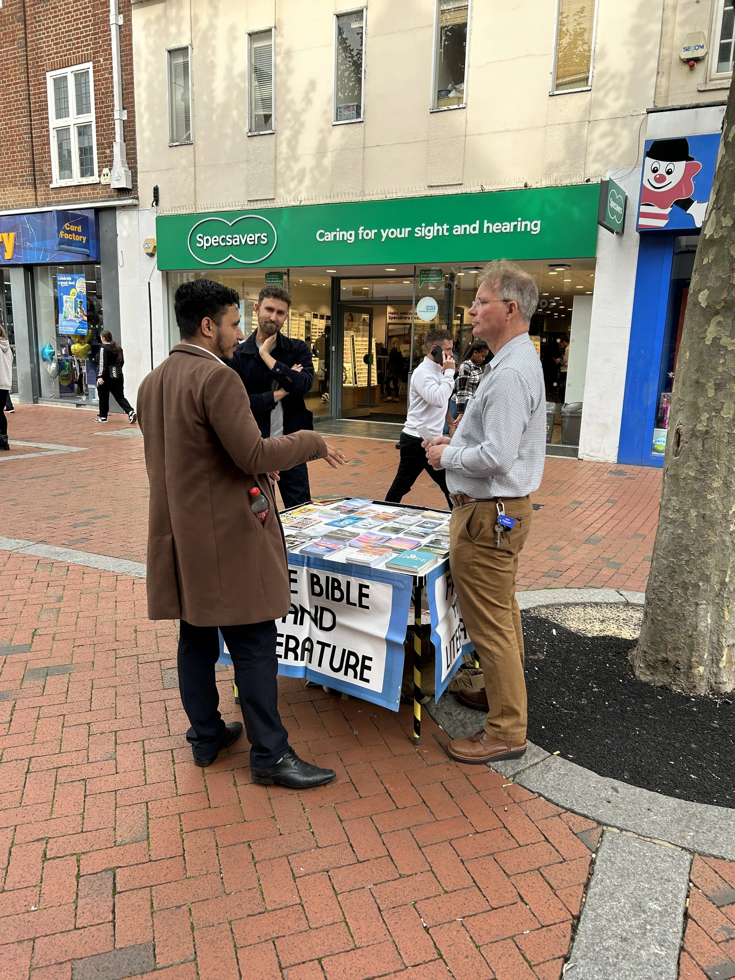 The first person we spoke to today was from Spain. They had questions about Jesus, so we gave them a copy of John’s Gospel in Spanish. Soon, we were sharing the gospel with those who spoke Portuguese and others who spoke Arabic. Throughout the outreach, we were reaching the nations without leaving England.