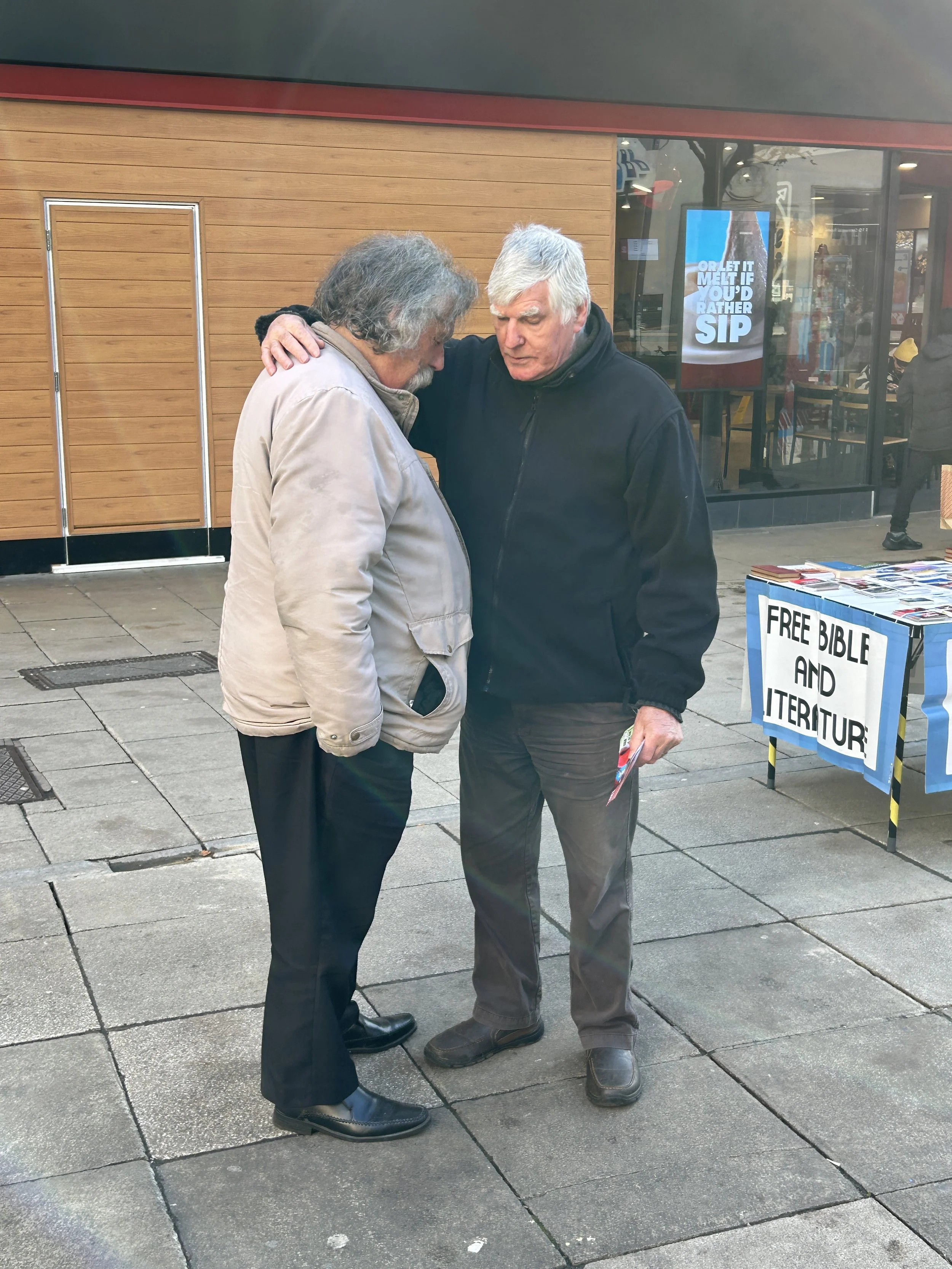 Yet, despite the actions of this self-proclaimed ‘apostle’, the gospel wasn’t silenced. During this time, I preached using the lyrics of different Christmas carols to explain the gospel. As I did this, a young man stopped and began to engage. We went back and forth about the gospel and the need for Jesus. In the end, the young man took a copy of John’s Gospel. Afterward, Roger was about to have a jolly good chat with him.