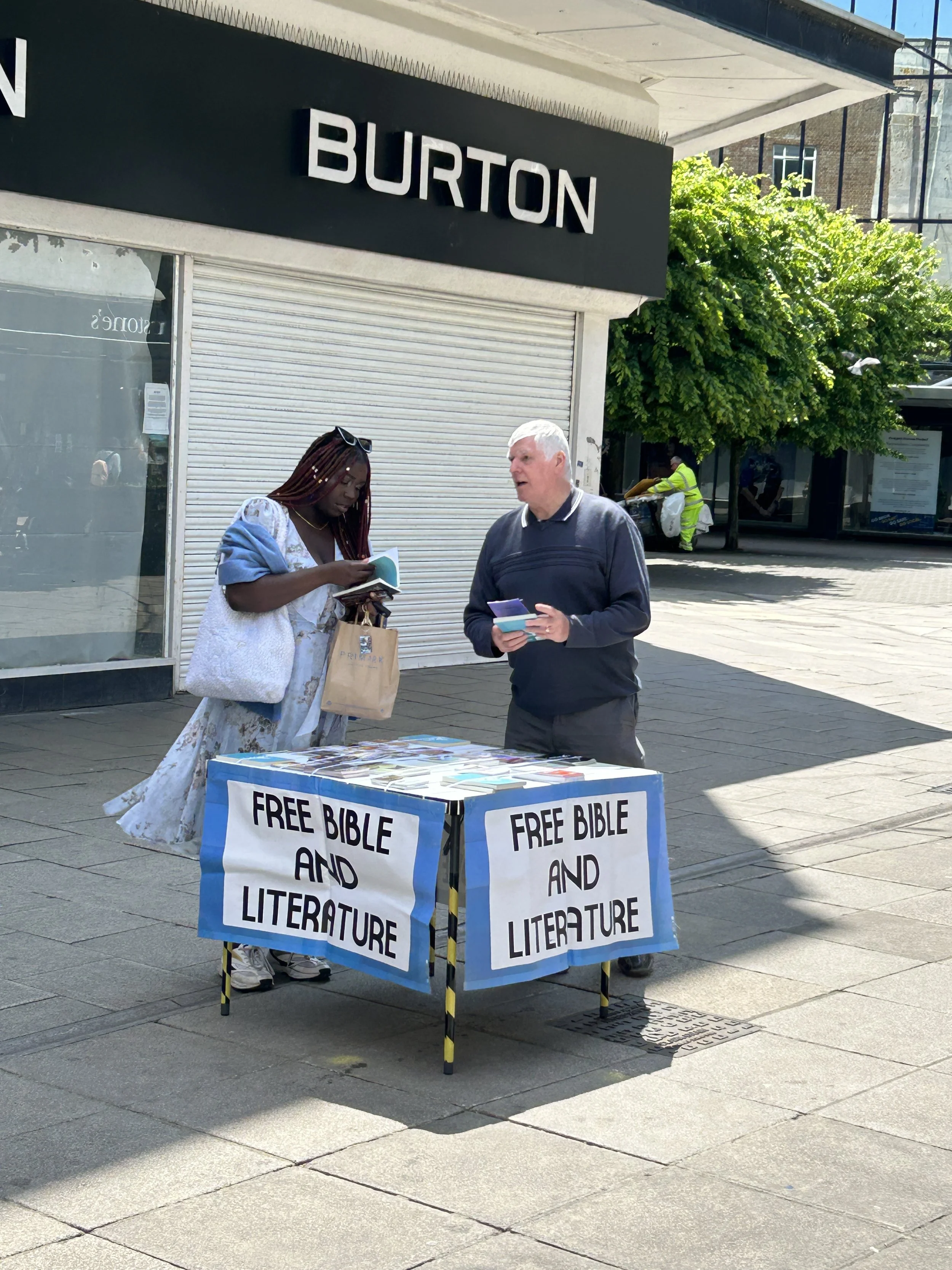It was great to return to Portsmouth today for a few hours of evangelism. The city centre was busy as people came out to enjoy the spectacular weather the Lord gifted us.