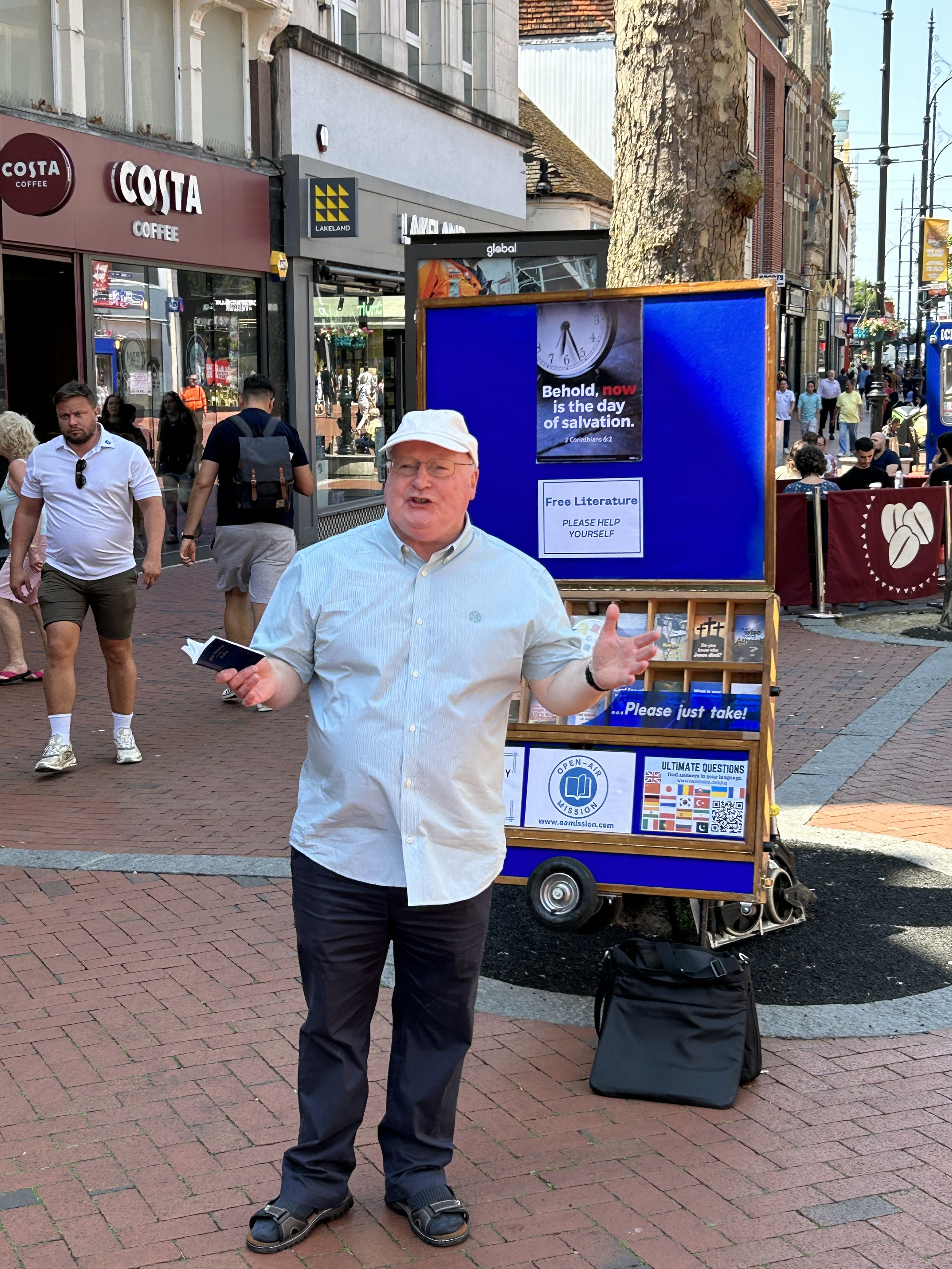 After the open air, the Muslim man who was filming came over to chat. His first words were, “I am a Muslim, but you’ve made me think!” He went on to thank me for engaging the questions that had been asked, and for actually believing what I preached. He told me that he wanted to understand Christianity more, but he didn’t understand the doctrine of the Trinity, nor how Jesus is God. I gave him a couple of booklets that addressed that topic, and he took other gospel material too.
