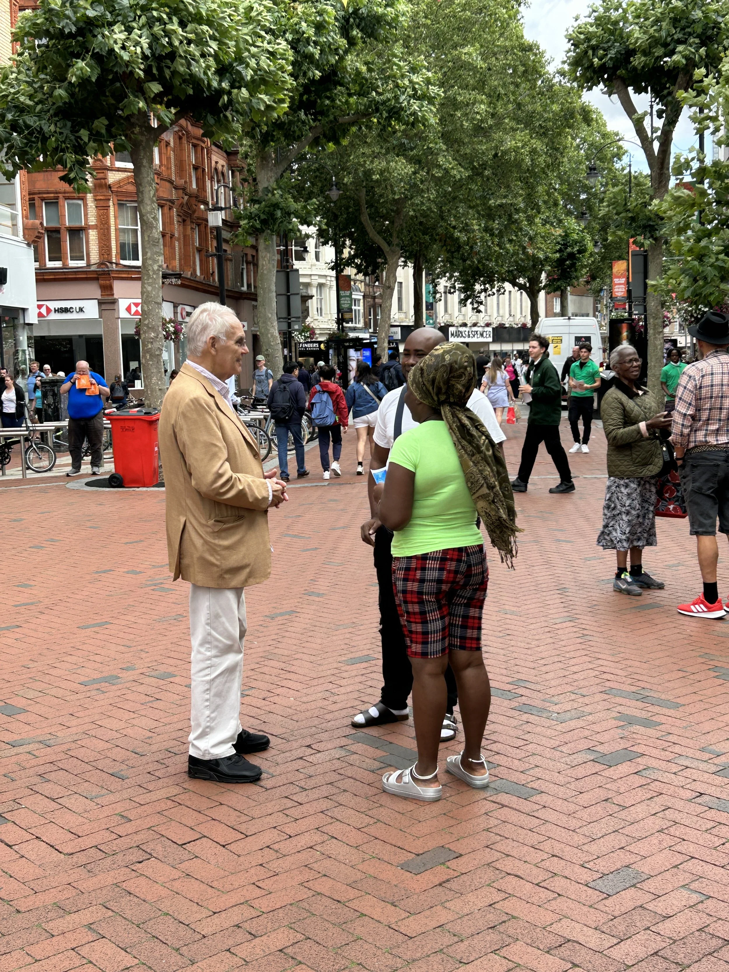 Trevor commenced the preaching by exhorting those in Reading to consider seriously the message of Jesus. As he preached, a few people paused to listen. Also, during his sermon, I noticed that many of the team members were engaged in one-to-one gospel conversations. The day was off to a great start!