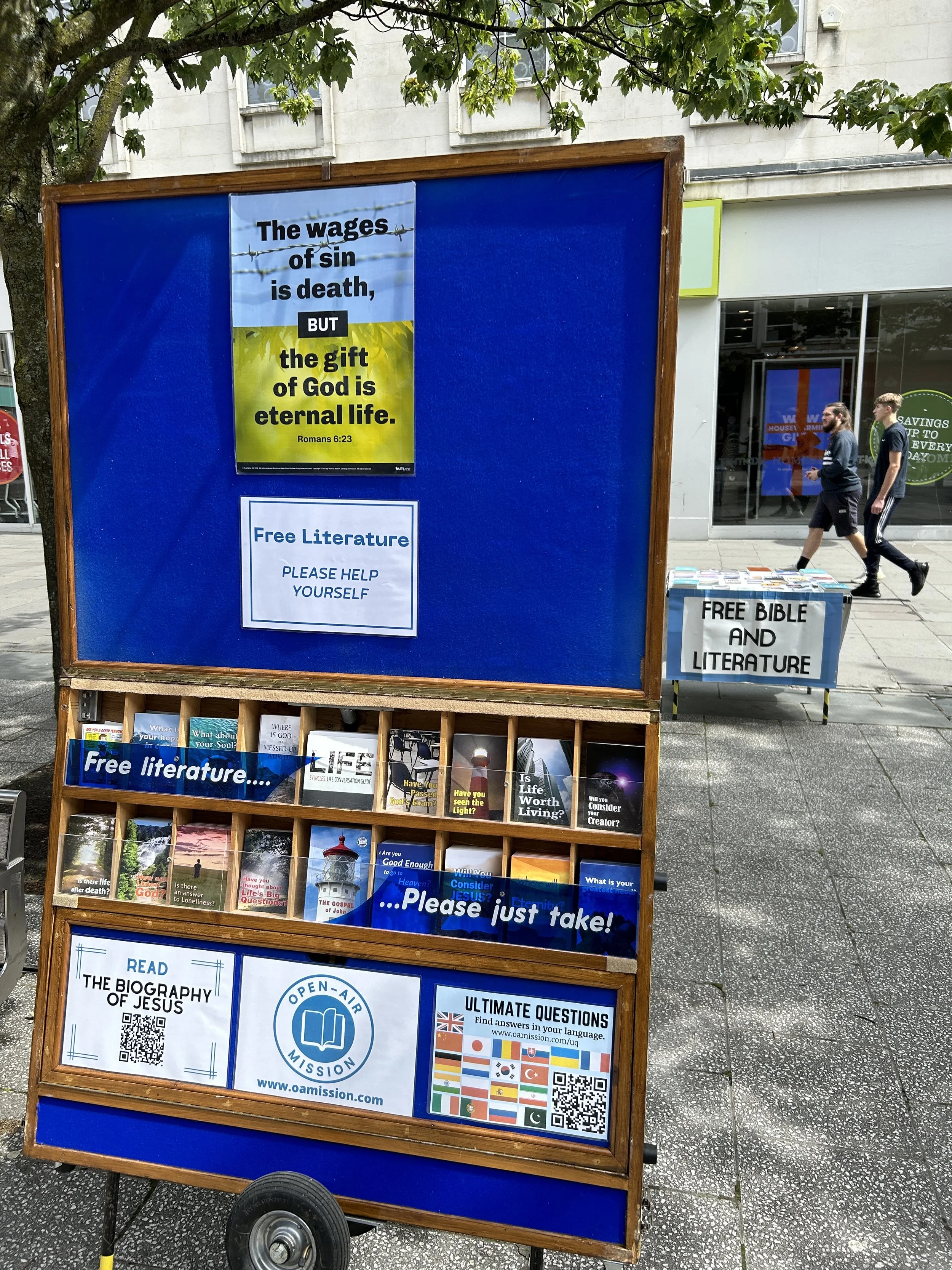 We had another incredible day in Southampton. The city centre was buzzing with people, so there were many gospel opportunities. In fact, we ran out of New Testaments, and heaps of literature was taken from the Free Bible table. People were open and ready to engage the good news.