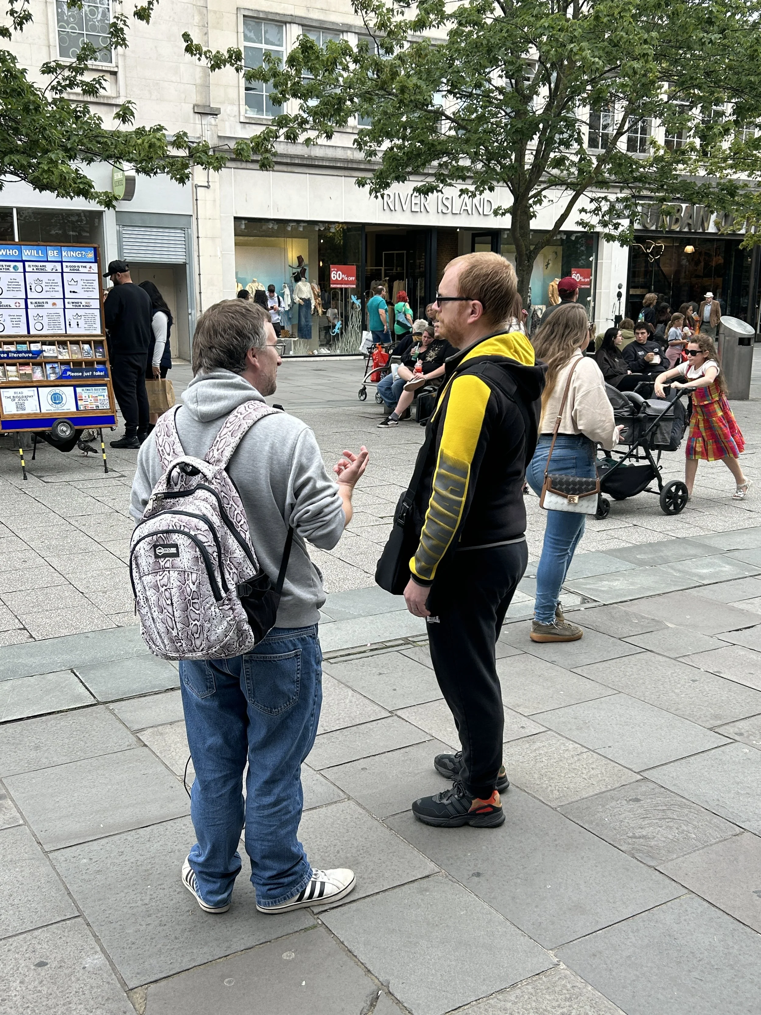 There were four of us on the team today, so we kept ourselves busy by handing out tracts and chatting to people. Many tracts were taken, and numerous gospel conversations took place. One of the first people I spoke to was a lady from Leeds who is down in Southampton on holiday. She shared a little of her story, and it was clear that things weren’t right between her and the Lord. She took a Bible and my contact details. Later, she would message me to say that God had spoken to her.