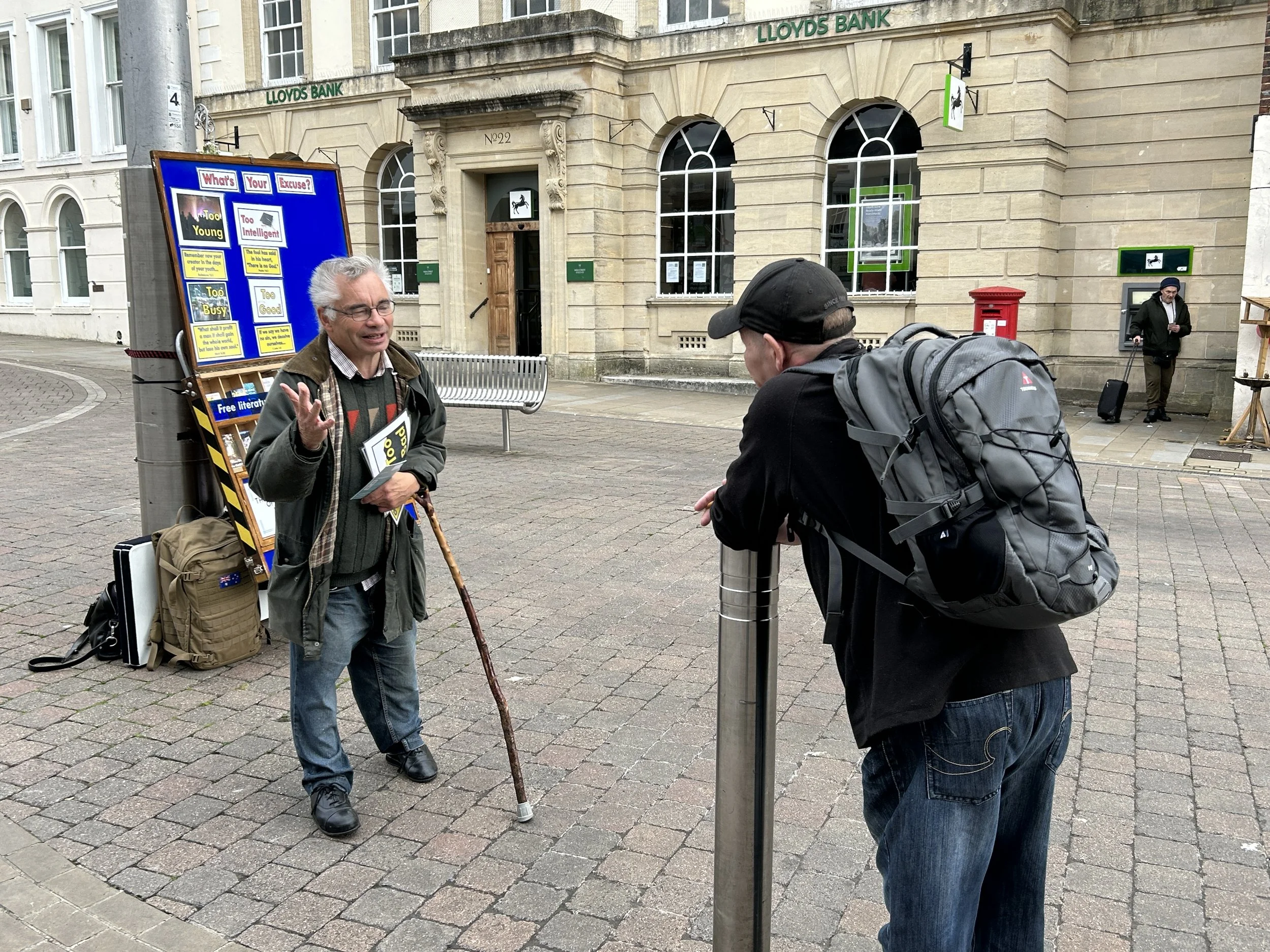Paul preached one more time, and as he did so, a man named Richard began to ask questions about the Big Bang and atheism. The preaching stopped, and a conversation developed between Paul, Richard and I. At first, Richard was antagonistic towards Christianity, but as we talked he warmed up. By the end, he was very friendly. Richard took a copy of John’s Gospel and said he would read it.