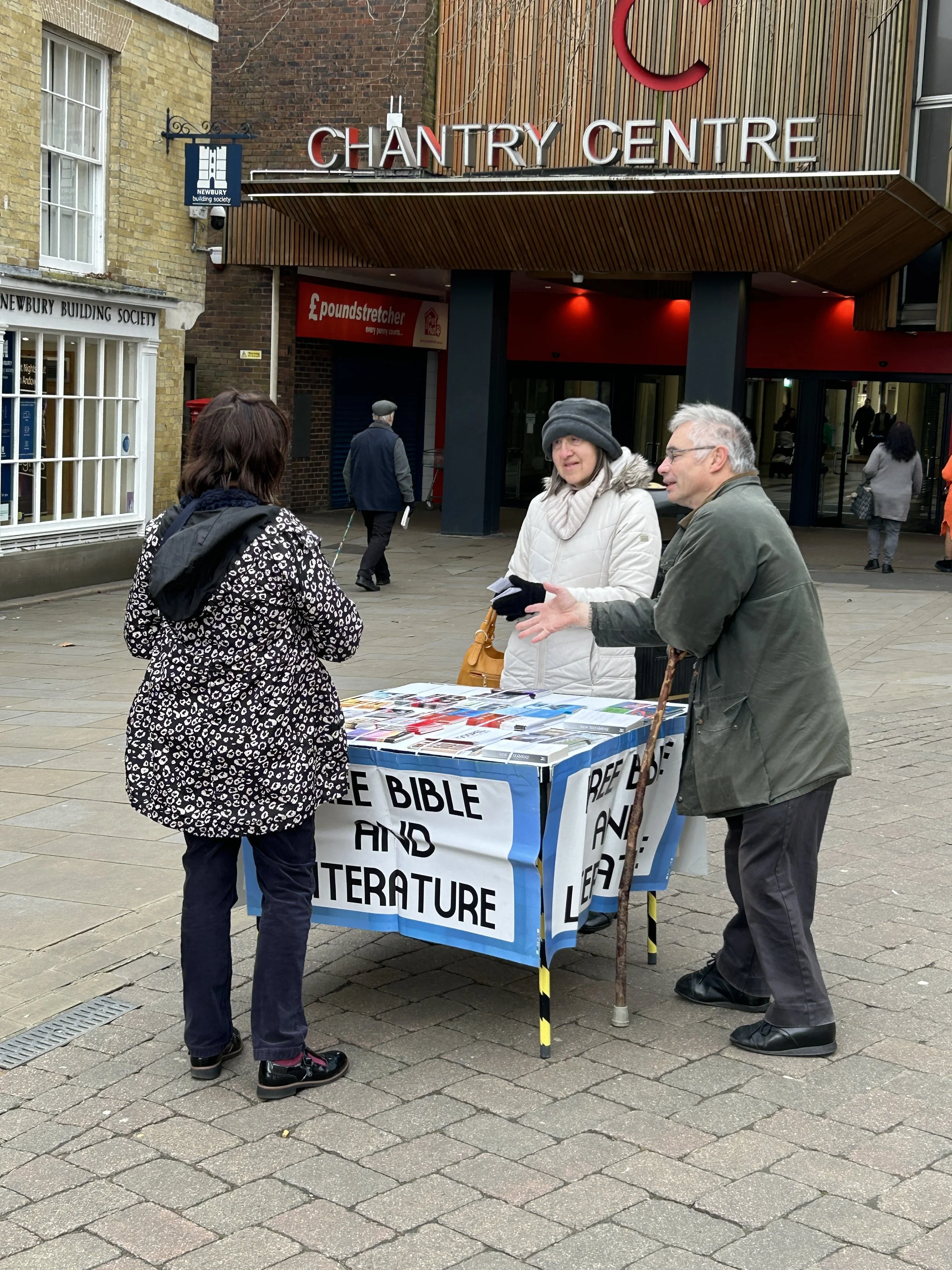 I must begin this report by publicly saying that I repent of my attitude towards Andover. Of all the locations we minister, this town is my least favourite. As I looked around the town, I saw that there weren’t many people out and about, so I wondered what was the point of us being there. But then I remember the value of one soul. Also, I have to say, every time I go to Andover, I find the Lord does something truly amazing – today was no different.