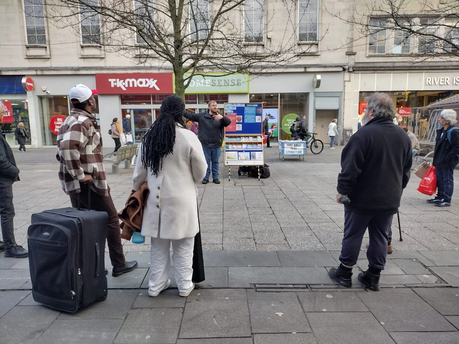 It was great to be back in our usual outreach location in Southampton. Now that the Christmas markets are packed away, we had the freedom to get back to business as usual. As we set up the open-air board and the free Bible table, I thought it would be an easy day – but challenges soon arose!