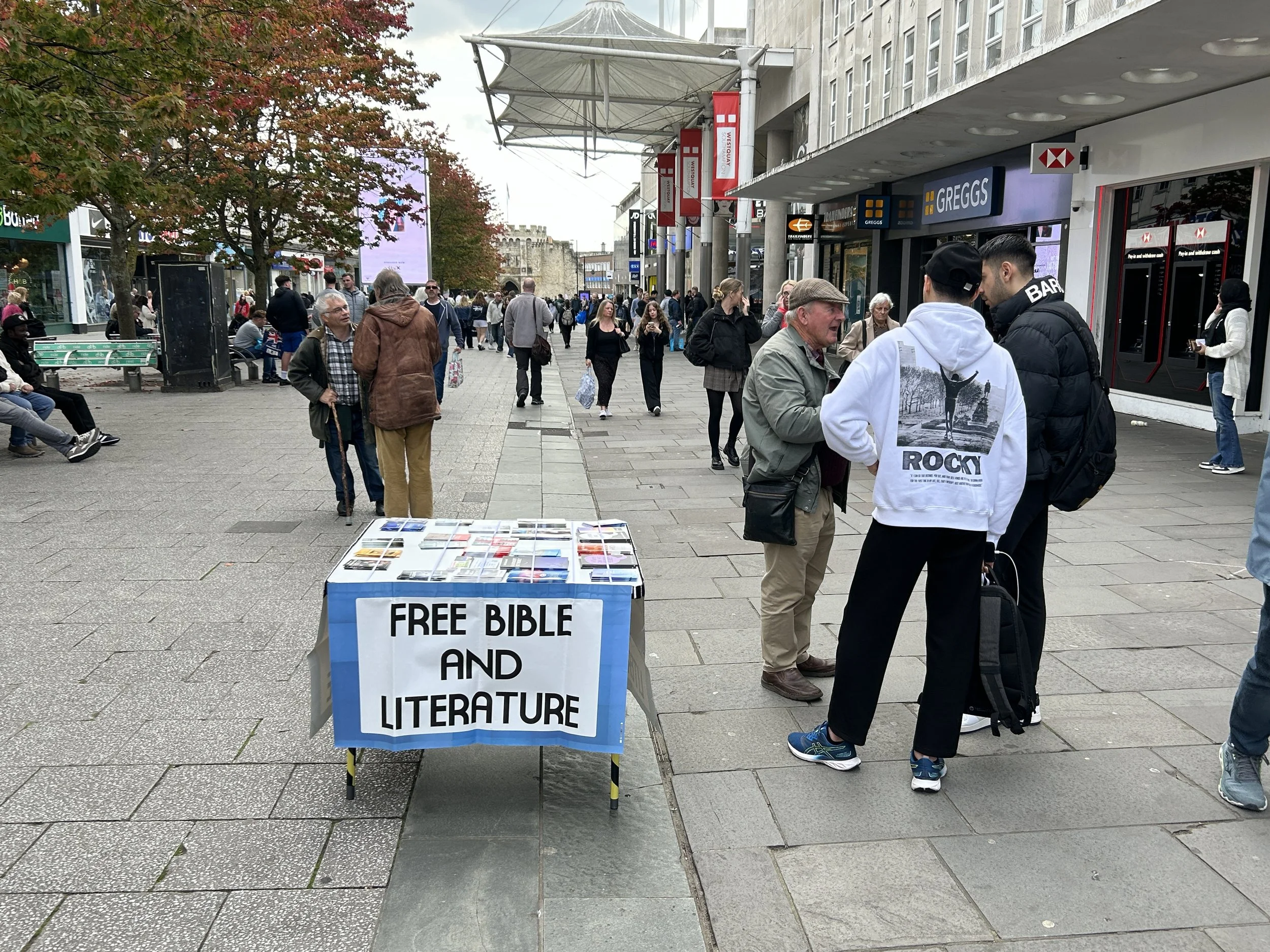 It was a lively and intense day in Southampton; yet, despite everything, we must rejoice that the gospel spread. We had a lot of literature taken, and many conversations took place. The truth marches on! Please pray for all those who heard the good news.