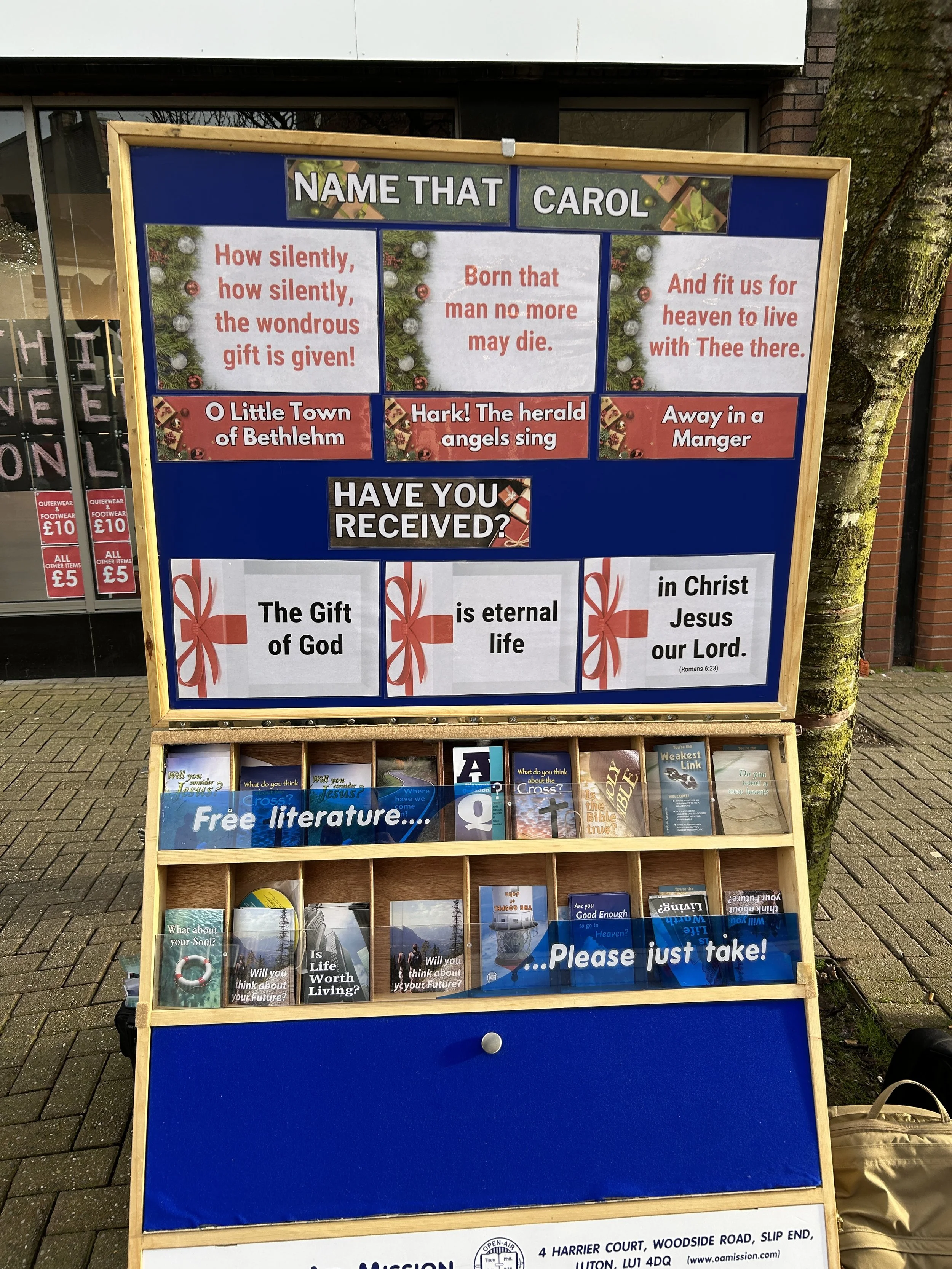 It was a joy to join with The Open-Air Mission associate worker, Rob, and the team in Hanley today for an outreach. There were about seven of us on the team, and despite the Christmas markets taking up loads of space, we were able to proclaim the good news.