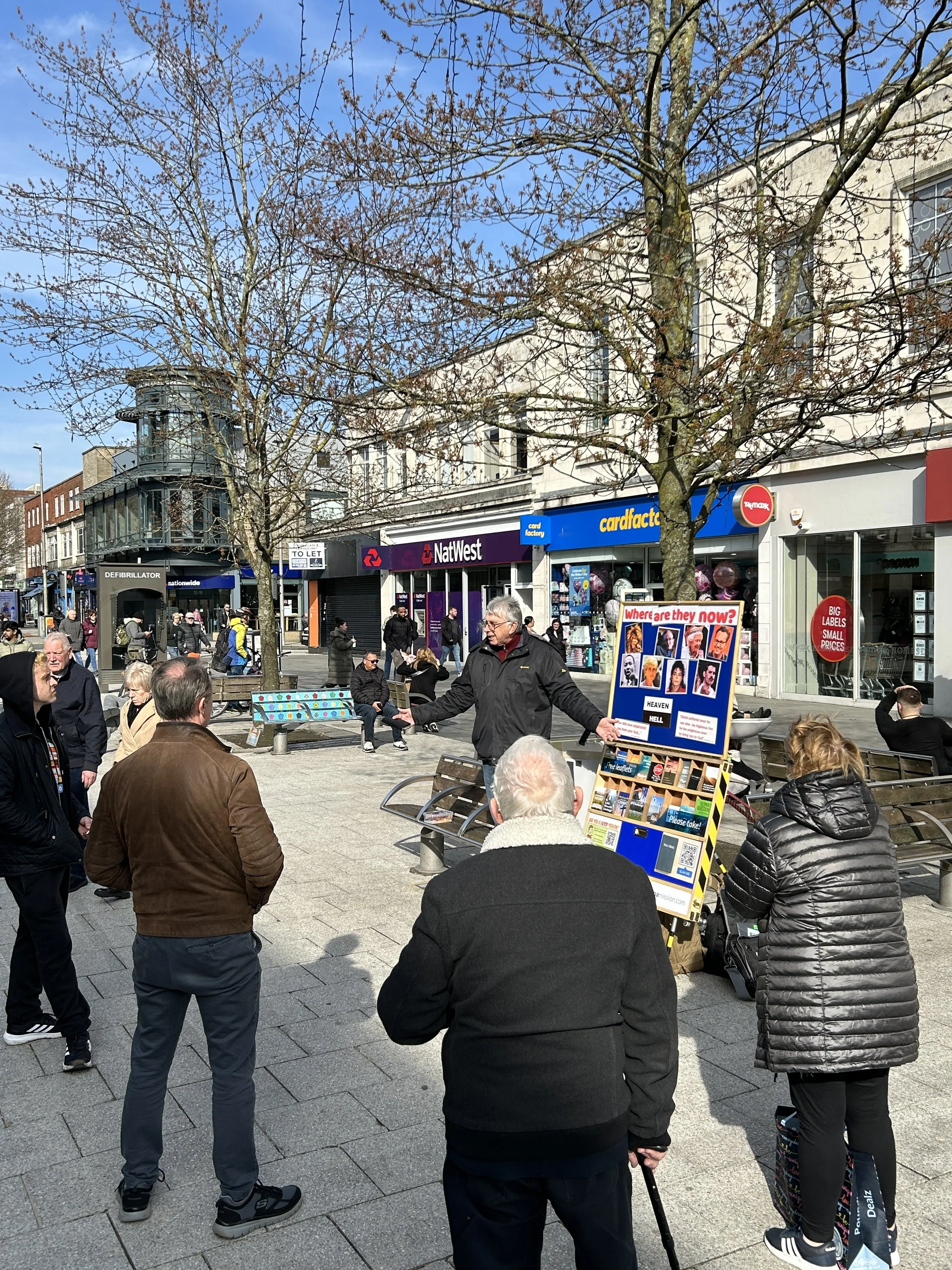 Next, I preached on “The Big Picture of Easter.” A young man listened as I explained the gospel, and at the end, he walked forward to receive a copy of John’s Gospel. He told me he was on his lunch break, but the preaching had impacted him as he had been thinking about Christianity. He couldn’t chat long as he had to get back to work; he also took a gospel booklet. Another man who listened had a work relationship with a lady from a local church; he listened to the preaching and took a copy of John’s Gospel and a tract. Nigel was able to share further with him.
