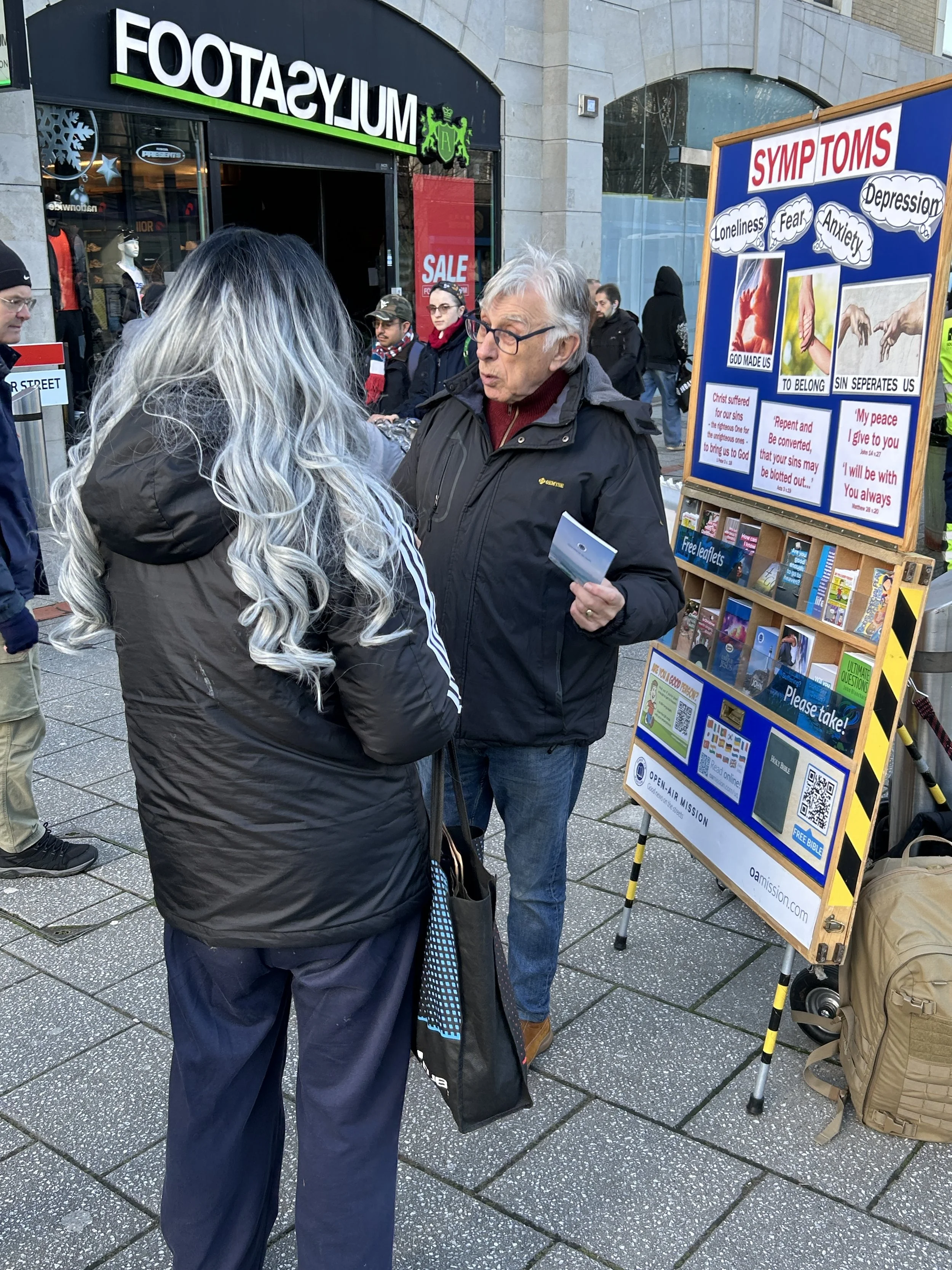 The open-air preaching commenced when Mike spoke on the subject of “Symptoms”. In this message, he showed that certain common issues in our society are the result of turning away from God. There was good engagement, with people asking questions.