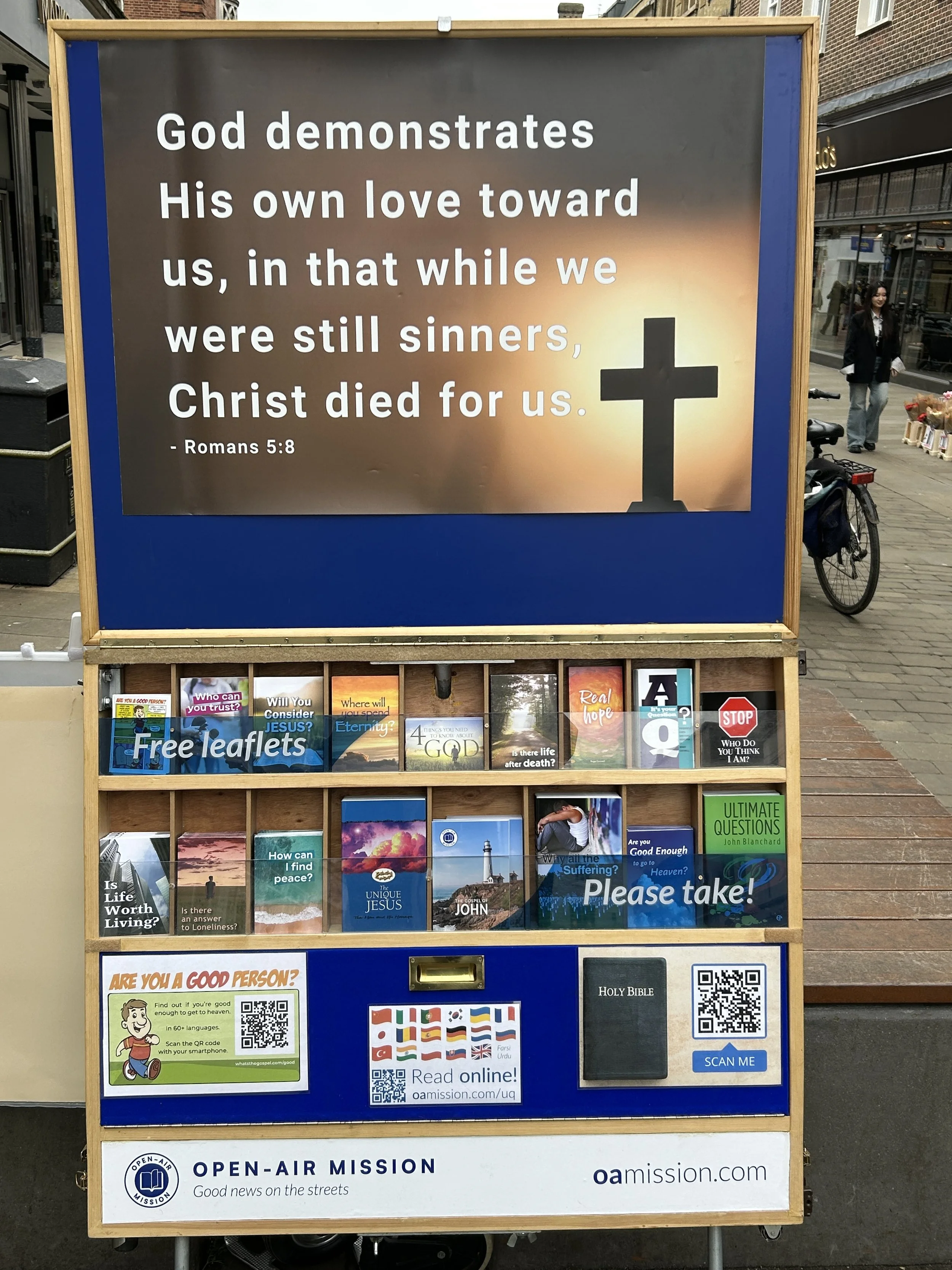 For the rest of the outreach, we continued handing out tracts and seeking to engage people in conversation. Even as people hurried past, I noticed many of them reading the Scripture verse on the open-air board. Silently, the truth was being proclaimed: