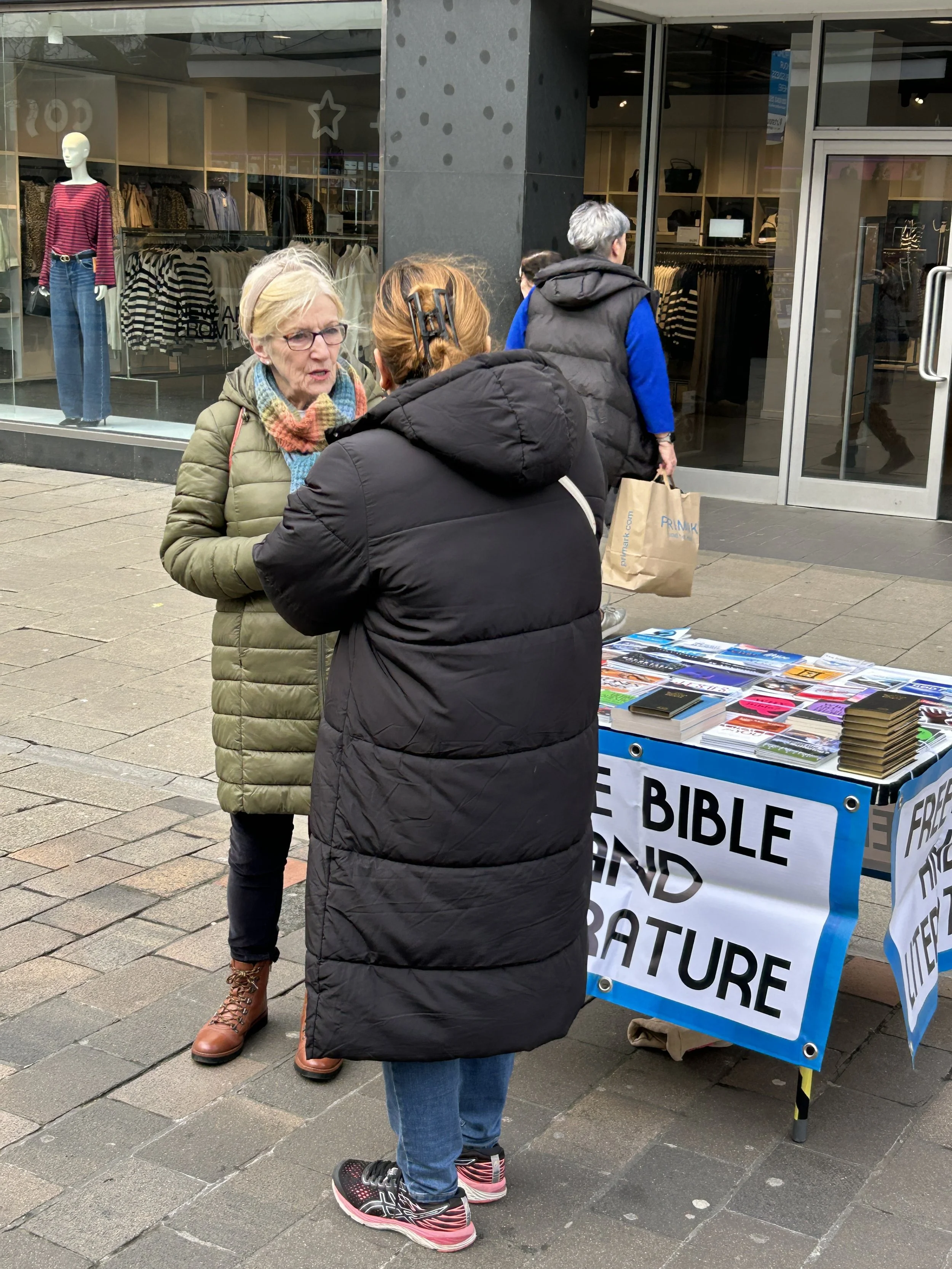 As I entered the city centre of Portsmouth, I heard a busker singing at the top of his lungs—amplified for good measure! As I approached our usual preaching location, I saw the busker nearby. Not to worry, I could still set up in our usual spot. But then I noticed a van parked right where I normally preach. This was unusual. I was now forced to move further along Commercial Road to a different location. I didn’t think it was ideal, but it would have to do. This spot had been ordained by the Lord, and He would soon reveal some of His plans to us.