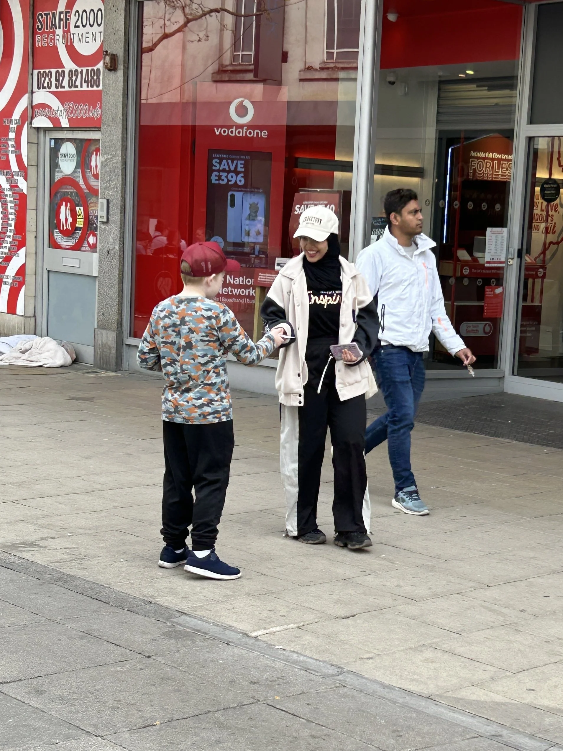 The beautiful spring weather continued as we made our way into Portsmouth city centre. Due to the school break, the city was busier – with more families and young people walking around.