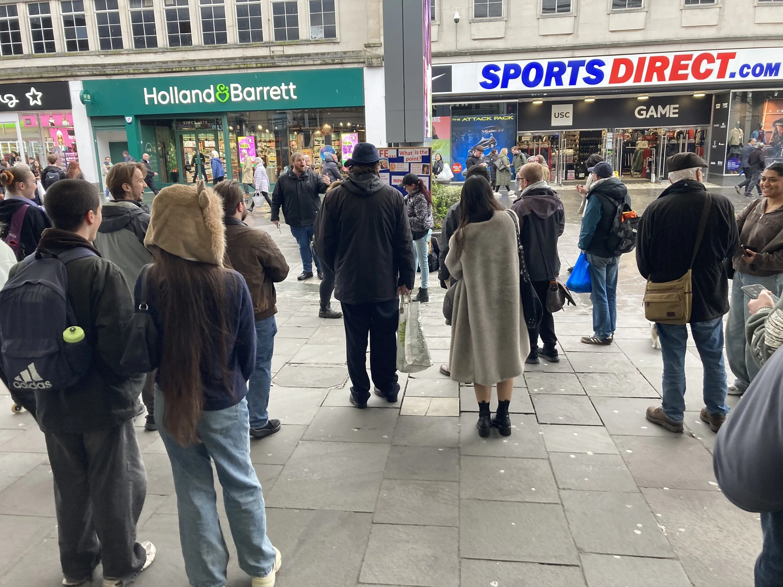 I engaged with her arguments using apologetics, showing that her worldview didn’t fit the evidence, nor did it give value and worth to humanity. The lady wouldn’t engage; rather, she would jump from topic to topic. But hecklers beget hecklers. Then a man, who identified as a pagan, shouted that paganism is the religion of England and that when the Roman Empire first came to Britain it forcibly converted everyone to Christianity. This is completely wrong historically, since the Roman Empire at the time it came to Britain was pagan. The atheist lady then changed her views to paganism and continued to heckle.