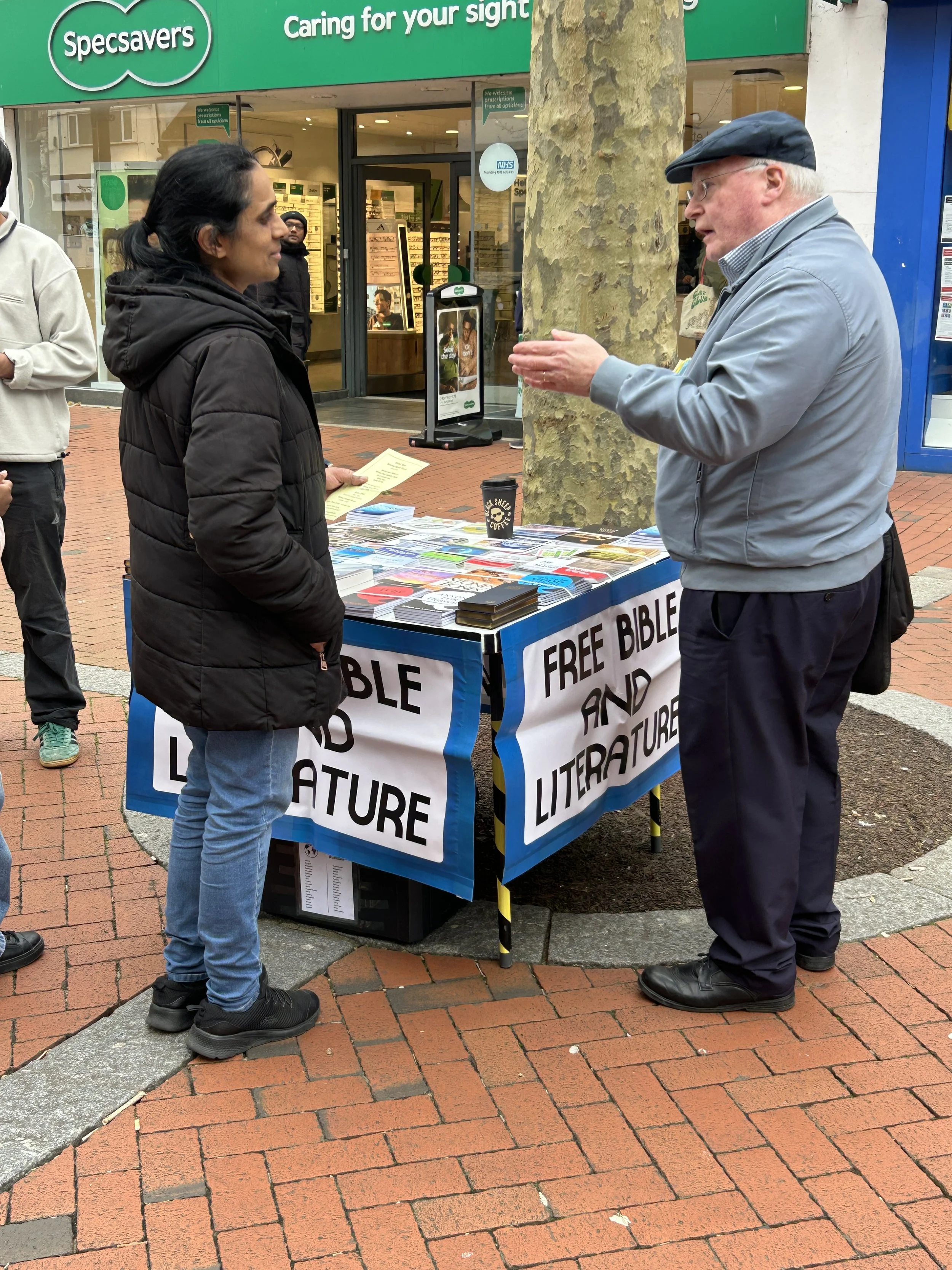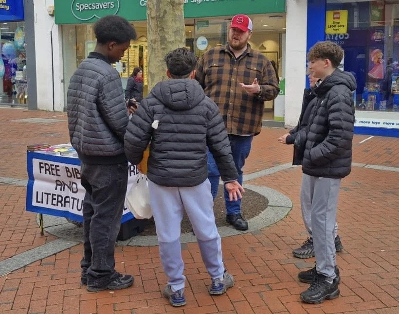 After preaching, I was handing out tracts when I offered one to a man. He was friendly and polite, but he rejected the leaflet. He told me he is from Afghanistan and is a Muslim. While we chatted, his young adult son was speaking with another team member about the gospel. So, I spent time talking with the father about how different England is from our homelands, and how we both miss the sun! At the end of our chat, he received a Gospel of John in his own language. The other team member was also given the contact details of the father and son, and is going to try to get them a full Bible in their language.